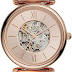 Fossil has always been inspired by American creativity and ingenuity. Since 1984, we’ve strived to bring new life into the industry by making quality, fashionable watches and accessories that were both fun and accessibleBold yet undeniably feminine, the Carlie watch is a luxurious statement piece. A soft, curvy case is combined with gently sloping lugs and a skeleton dial revealing the inner workings of the watch. The self-winding movement keeps time for about 40 hours